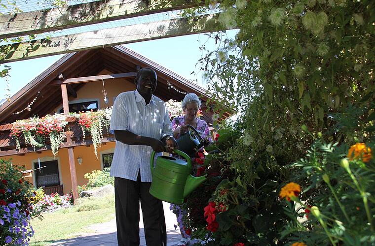 Die sucht Abbé Leon in der Pfarreiengemeinschaft Aidhausen und Riedbach, wo er Urlaubsvertretung macht, vergeblich. Dafür hat er in der Familie Bayer Freunde fürs Leben gefunden. Bereits zum 13. Mal wohnt er in ihrem Haus in Kerbfeld, hilft "Mama Bayer", den großen Garten zu gießen, und sitzt mit ihr auf der Terrasse.
