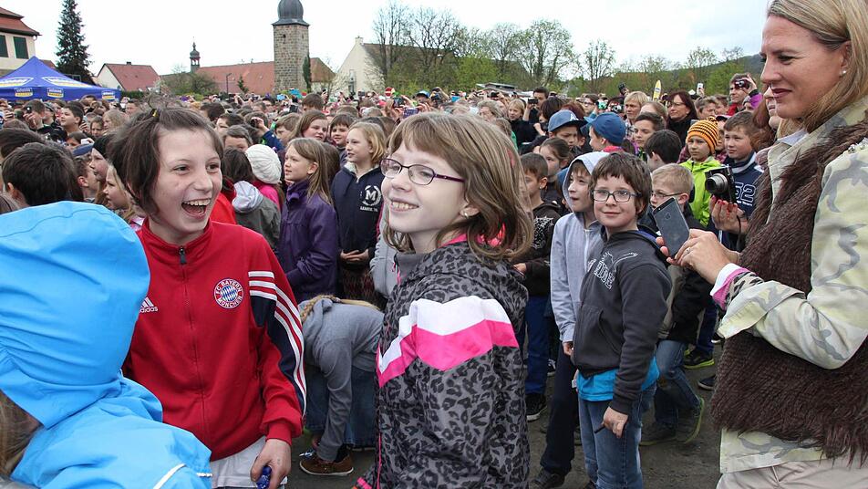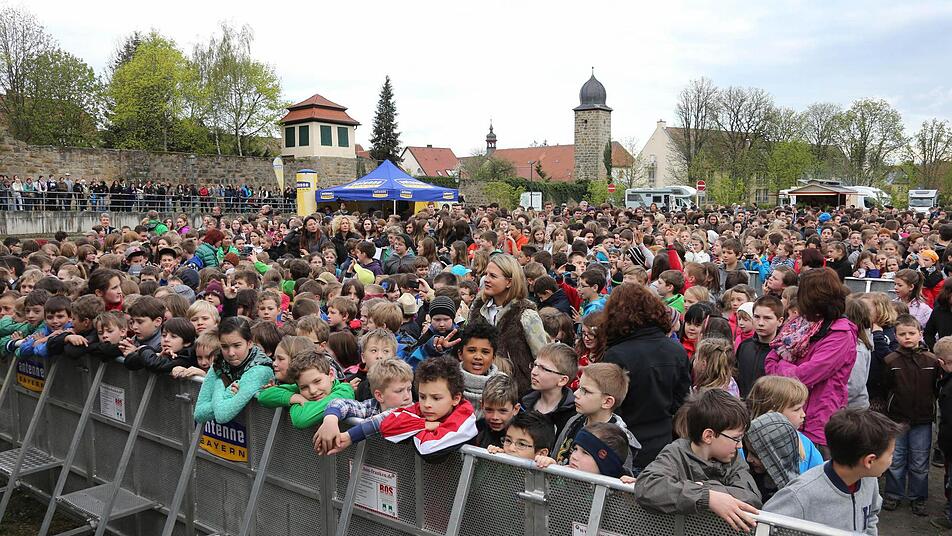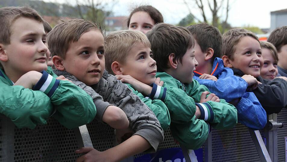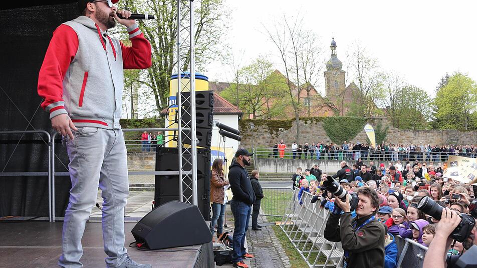 Auch die Mütter zog der Rapper mit seinem 30-minütigen Gastspiel in seinen Bann. "Das ist super, das so ein Star nach Ebern kommt", freute sich Sabine Herz. "Das ist spannend und aufregend. Die Eltern zappeln ja mehr als die Kinder", meinte sie als Zaungast.