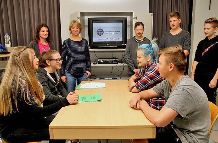 Dabei sind die Streitursachen auch vom Alter abhängig. Wie Jugendsozialarbeiterin Margarete Schindhelm betonte, geht es in der 5./6. Jahrgangsstufe von Rangeleien über das kaputte Lineal bis hin zu Schimpfwörtern und Hänselungen. Ab der 7./8.