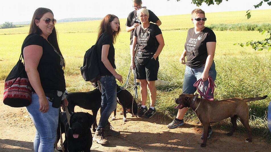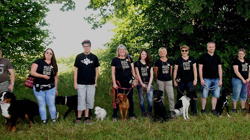 Begleithunde Christiane Dudziak, Rügheim (Mischling Bella); Anja Henneberger, Unterhohenried (Labrador-Bulldog Benno); Lucca Höra, Altershausen (Jack Russel Biene); Katharina Fuchs, Alitzheim (Rihodesian-Ridgeback Calino), Tobias Stöhr, Haßfurt (Patterdale Terrier Django); Carola und Linda Martin, Riedbach (Labrador Hewlett von Fichtenberg); Julia Keß, Sylbach (Labrador Hugo); Martina Hömer, Haßfurt (Mischling Lilly); Korinna Mauer, Haßfurt (Labrador-Botenko Rosco); Peter Kehl, Wonfurt (Berner Sennenhund Schelly Taya)) und Egon Frank, Theres (Labradoodle Tessa).