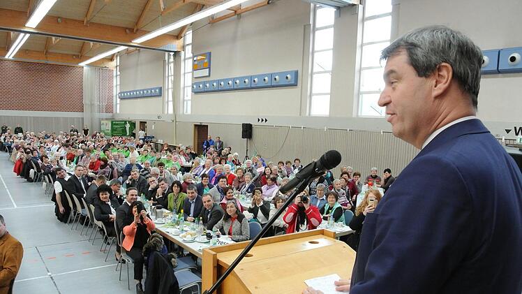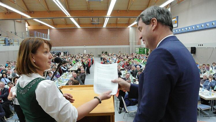 Da durfte Söder durchaus das anschließende Bad in der begeisterten Menge der vielen Landfrauen genießen, die ihn freudig willkommen hießen. Söder schüttelte Hände und hielt im Anschluss eine Rede, bei der er als fränkischer Charming-Boy die Herzen gewann.