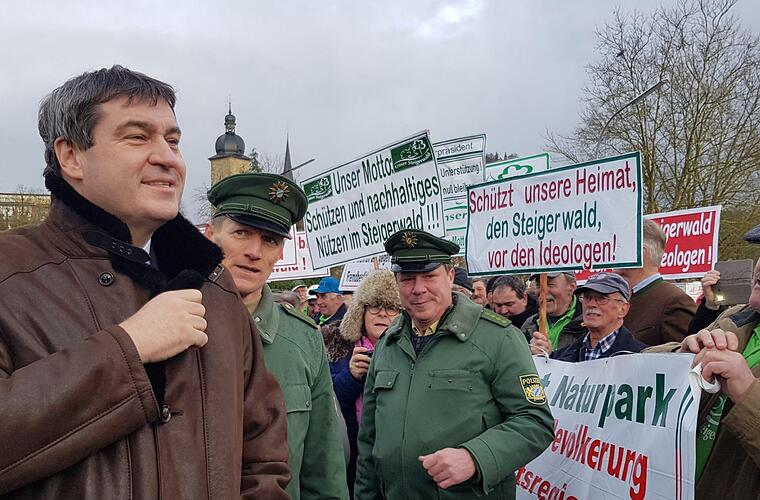 Als Söder kam und im Kreise von "Unser Steigerwald" kurz und schmerzlos bekräftigte, dass er nicht vorhabe, die Entscheidung der Staatsregierung in Sachen Nationalpark zu ändern, lief eine Welle der Erleichterung durch die Reihen von "Unser Steigerwald".