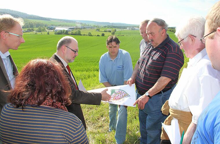Rosige Aussichten, sonnige Gemüter. "Einfach traumhaft", schwärmte Bürgermeister Robert Herrmann (CSU) beim Ortstermin des Bauausschusses am Mittwochabend in Richtung Sonnenuntergang. Das neue Baugebiet "Sonnenleite" in Eyrichshof soll auf fast 13 Hektar, die die Stadt zu Jahresbeginn erworben hat, 34 Bauplätze vorrangig für junge Familien bieten.