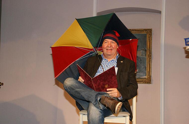 Als weiser Indianerhäuptling eröffnete Mäc Härder das Programm und wandte sich an die "Söhne und Töchter der untergehenden Sonne". Seltsame Wandlungen beobachtete er: "Wir bemalen unsere Gesichter, der weiße Mann beschriftet seinen ganzen Körper. Der alte weiße Mann läuft Marathon, die alte weiße Squaw rennt mit Stöcken durch die Jagdgründe". Mit den Gedanken zum Alter ("wirklich alt bist du, wenn auf dem Nachtkästchen mehr liegt als im Bett") übergab er erstmals an seinen "Bruder im Geiste", seinen hessischen Kollegen