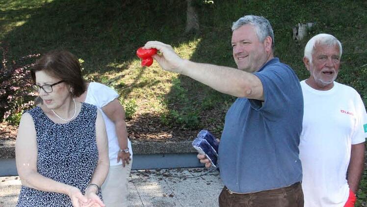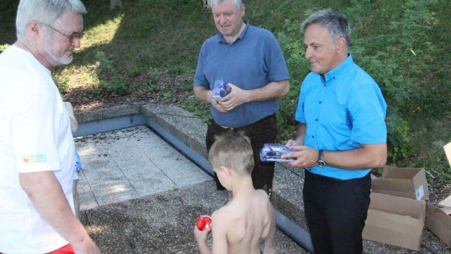 Rote Quietsche-Enten Bürgermeister Jürgen Hennemann (SPD) würdigte alle, die sich um die Schwimmausbildung der Kinder kümmern. "Ich wusste gar nicht, dass wir in unserem Freibad einen Whirlpool haben," sagte der Bürgermeister, da die Kinder mit Strampeln das Wasser zum brodeln brachten. Erfreut über den Spaß, den die Kinder offenkundig hatten, und auch über das Engagement der DLRG Ebern äußerten sich Schulamtsdirektorin Ulrike Brech und die Rektorin der Grundschule Ebern, Ingrid Mandery.