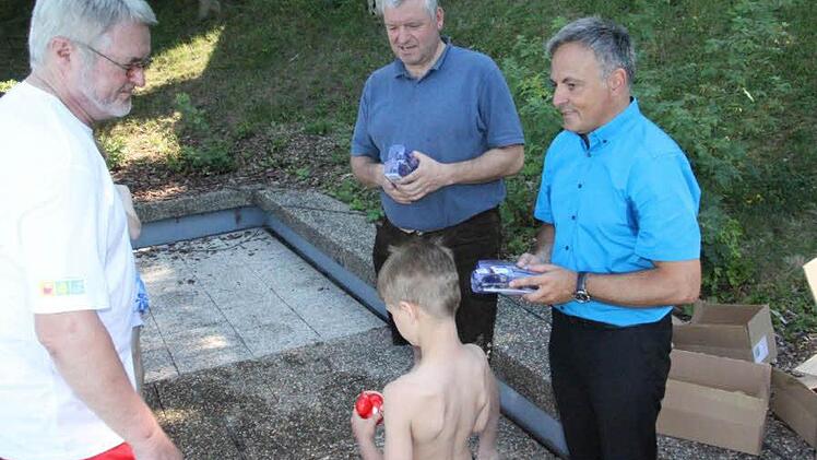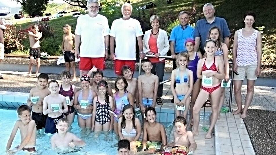 Die Abschlussveranstaltung am Mittwoch im Freibad Ebern zeigte, dass die Verwirklichung der Aktion unter Regie der Eberner DLRG mit Rudi Rath und Klaus Bayersdorfer an der Spitze gelungen ist. "Hallo Rudi", schallte es aus vielen Kindermündern am Eingang des Freibades in Ebern. Schon das zeigt, dass die Chemie zwischen den Ausbildern der DLRG, Schule und Kindern stimmt.