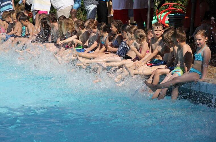 Mit der Trillerpfeife Nachdem sich die etwa 270 Kinder der Grundschule im Nichtschwimmerbecken abgekühlt hatten war es nicht leicht die "Wasserratten", die vor Freude eher schnatterten wie die "Wasserenten" , auf sich aufmerksam zu machen. Das Mikrofon hatte seinen Geist aufgegeben. Gut dass Lehrerin Birgit Finzel ihre Trillerpfeife dabei hatte, um den Rednern Gehör zu verschaffen.