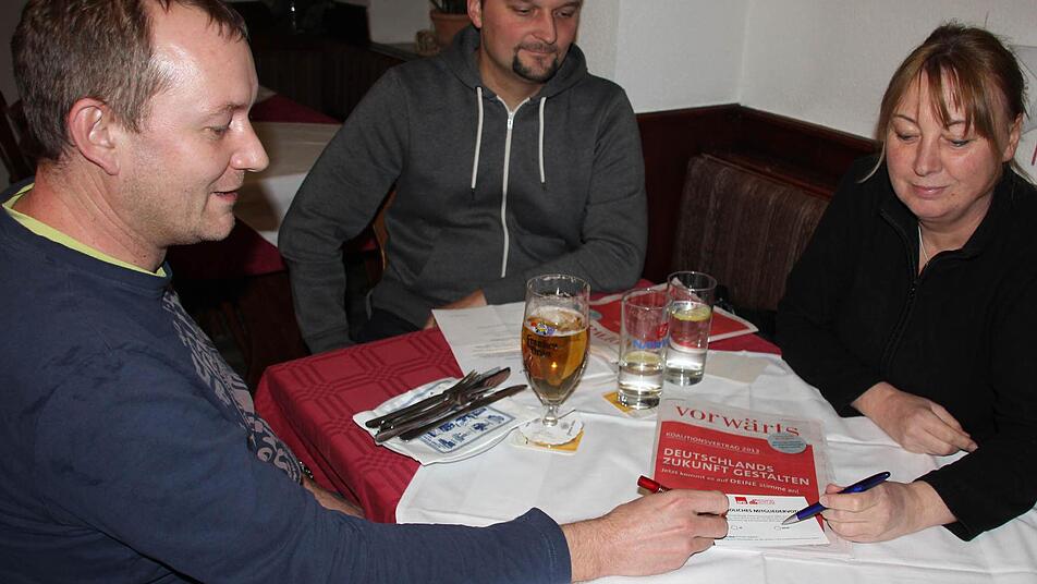 Im Rentweinsdorfer SPD-Ortsverein wurde über den Koalitionsvertrag diskutiert. Die Basis trifft sich im Hinterzimmer und fröstelt. Doch das Thema erhitzt die Gemüter: Elf von 31 Mitgliedern des SPD-Ortsvereins diskutieren über den Koalitionsvertrag, der ihre Partei-Oberen mit den Vertretern von CDU und CSU ausgehandelt haben - und über den sie abstimmen dürfen beziehungsweise sollen.
