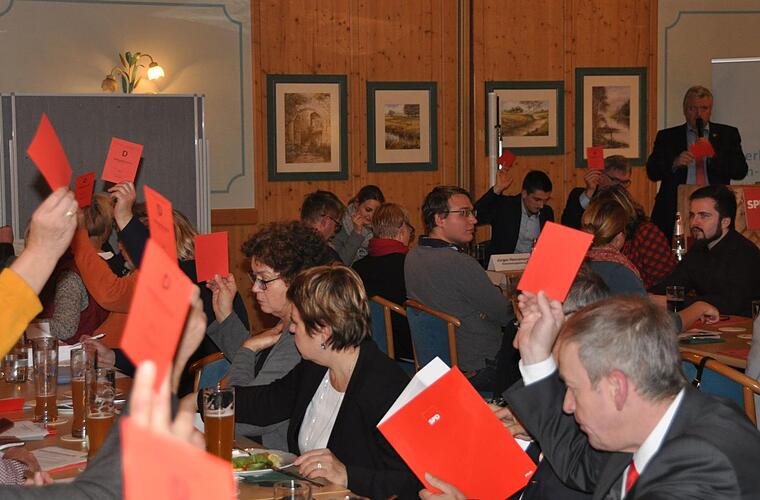 Bevor die Stimmkreiskonferenz endete, eröffnete die Tagesordnung die Möglichkeit zur Diskussion über die aktuelle bundespolitische Situation. Etwa ein Dutzend der Anwesenden inklusive der Bundestagsabgeordneten Sabine Dittmar, der Landtagsabgeordneten Kathi Petersen und der ehemaligen Vizepräsidentin des Deutschen Bundestags, Susanne Kastner, meldeten sich zu Wort. Dabei drehte sich fast alles um die Frage, welche Rolle die SPD bundespolitisch einnehmen sollte. Konkret: Ob sie sich an einer Regierung beteiligten sollte - und wenn ja in welcher Art und Weise.