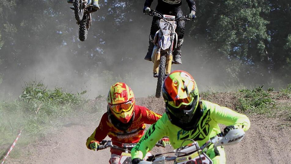 Große Sprünge, viel Staub, Schweiß und manchmal auch Nervenkitzel standen "auf der Alm" im Mittelpunkt, als die Motocross-Fahrer ihre Nordbayern-Serie und thüringer Meisterschaft austrugen - und dies bei hervorragenden äußeren Bedingungen. Der Bramberger Motorsportclub hatte wieder alles bestens organisiert, und die zahlreichen Zuschauer sahen spannende Rennen und Duelle um Zeiten und Punkte.