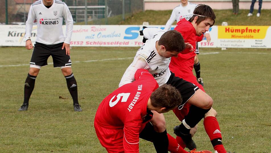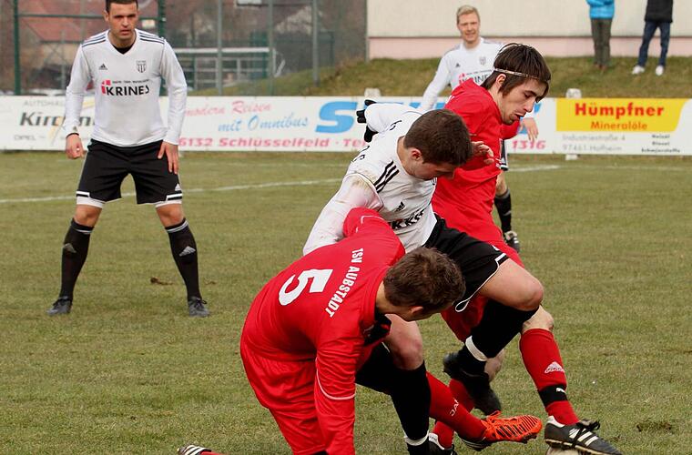 Sein Überzahlspiel nutzte der TSV Aubstadt, um sich im Mittelfeld besser zurechtzufinden. Dadurch erarbeiteten sich die Grabfelder auch Gelegenheiten durch Bäcker (32.) und Rützel (38.) per Freistoß, aber nichts Zwingendes.