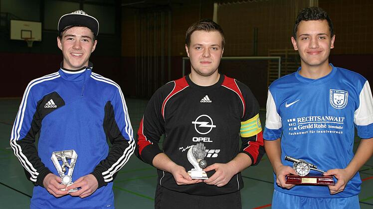 Einen erfrischenden Hallenfußball spielte auch der FC Rentweinsdorf mit seiner jungen Truppe. Daniel Schneidawind vom TSV Pfarrweisach wurde zum besten Feldspieler, Steffen Elflein vom TV Ebern zum stärksten Torwart auserkoren. Die Torjägerkanone bekam Dennis Holzwarth vom FC Rentweinsdorf. Der 19-Jährige lochte sieben Mal ein, gefolgt vom Hannes Fischer (TV Ebern) und Daniel Schneidawind (TSV Pfarrweisach), die beide jeweils sechs Mal trafen.