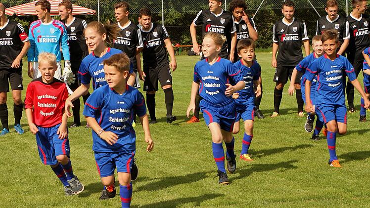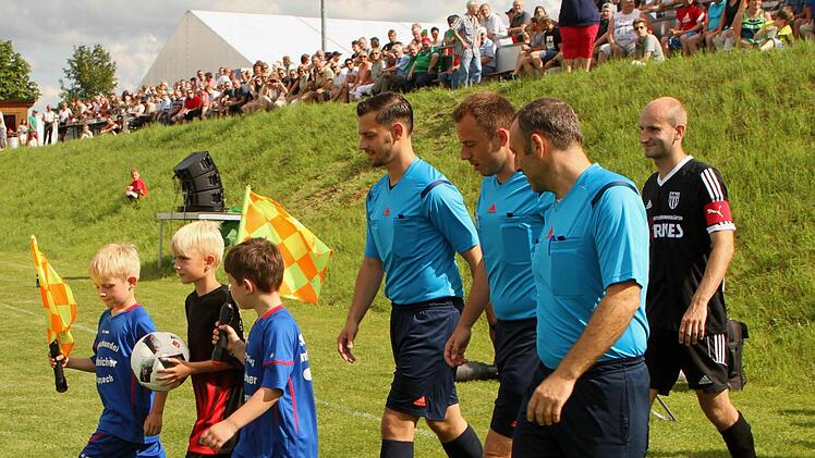 Viel Beifall gab es schon beim Einlaufen der beiden Mannschaften, die erst seit wenigen Tagen wieder im Training stehen. Der Untersteinbacher Vorsitzende Karl Zimmermann und der Sportliche Leiter der SpVgg, Markus Huttner, bedankten sich bei beiden Mannschaften für ihre Zusage für dieses Jubiläumsspiel. Die 550 Zuschauer sahen eine abwechslungsreiche Begegnung, in der die Sander gut mithielten, sich dann aber doch der Klassenunterschied bemerkbar machte.