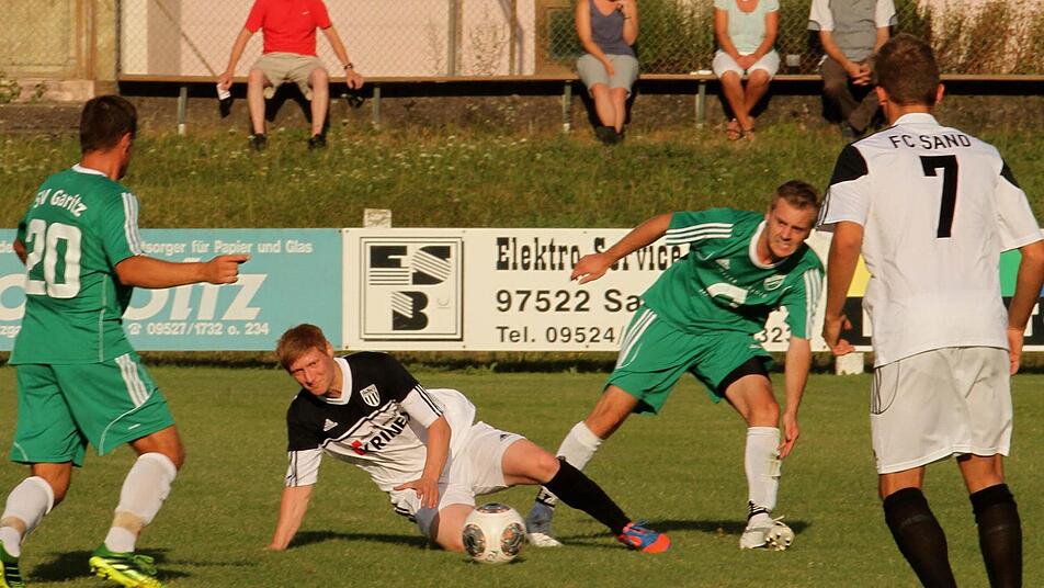 Beide Mannschaften traten mit mehrfachem Ersatz an. Beim FC Sand fehlte fast die komplette Abwehr, so dass der von Bamberg zurückgekehrte dominik Barth zunächst auf der rechten Verteidigerposition eingesetzt wurde. Trotzdem zeigten beide Mannschaften zumindest im ersten Spielabschnitt ein gutes und abwechslungsreiches Fußballspiel. Eine sehr gute Möglichkeit hatte in der 6. Min. der Garitzer Marcel Rudolph, der völlig freistehend seinen Heber über den Heimtorhüter Dominik Biemer hinweg, aber auch neben das Sander Tor setzte. Der gleiche Spieler hatte in der 10. Min. die nächste große Chance, konnte nach einem schnellen Antritt aber im letzten Moment noch von Andre Karmann gestellt werden.