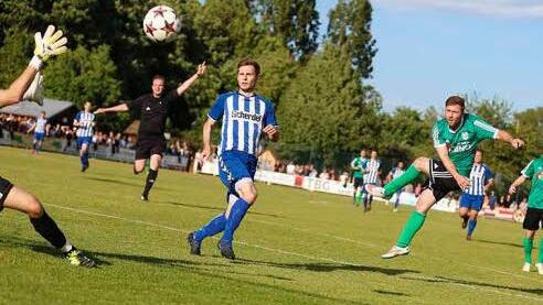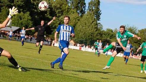 Wasser bricht den Bann Ein Treffer kurz vor und einer kurz nach Seitenwechsel brachte die Sander klar auf Erfolgskurs. In der 45. Minute brachte Stefan Wasser mit einem tollen Kopfball nach Freistoßflanke von Josef Pickel den Vizemeister der Landesliga Nordwest in Front. Und in der 47. Minute legte Sven Wieczorek nach, als er entschlossen einschoss, nachdem Florian Gundelsheimer mit großem, aber fairem Einsatz im Strafraum gegen Gästetorwart Mario Möschwitzer dafür gesorgt hatte, dass der Ball noch frei war. Das 3:0 (57.) war eine Sache für René Finnemann, der den verletzten Daniel Rinbergas als Kapitän vertrat. Nach einer Ecke von rechts nutzte er einen Abpraller am gegenüber liegenden Fünfmetereck und setzte den Ball überlegt hoch ins lange Eck. Und mit dem 4:0 belohnte sich der unermüdlich rackernde Gundelsheimer, als er nach einem schönen Angriff über rechts aus rund zehn Metern einschoss. Danach pfiff Schiedsrichter Andreas Heidt, der eine starke Leistung zeigte, die Begegnung gar nicht mehr an.