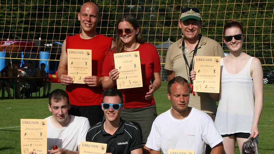Trotz der hochsommerlichen Temperaturen wurde beim zum zweiten Mal ausgetragenen Freizeit-Volleyballturnier im Rahmen des Sportfestes des TSV Pfarrweisach recht ansprechender Sport geboten. Es siegte das Eberner Team "Hartholz".