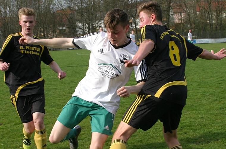 Vor dem Wechsel sah es auch nicht danach aus. Die Gäste entwickelten vom Anpfiff weg viel Druck. Mehr als einmal lag der Führungstreffer für den FSV in der Luft, so durch Tobias Bayer in der 5., 8. und 13. Minute sowie durch Florian Walter und Dominik Betz. Doch zeigte sich TV-Torwart Jens Kapell in Bestverfassung. Zudem rettete in der 35. Minute Ammon auf der Linie. Von den Hausherren war in dieser Phase im Spiel nach vorn so gut wie nichts zu sehen. Angriffsführer Simon Fischer war so gut wie allein auf sich gestellt.