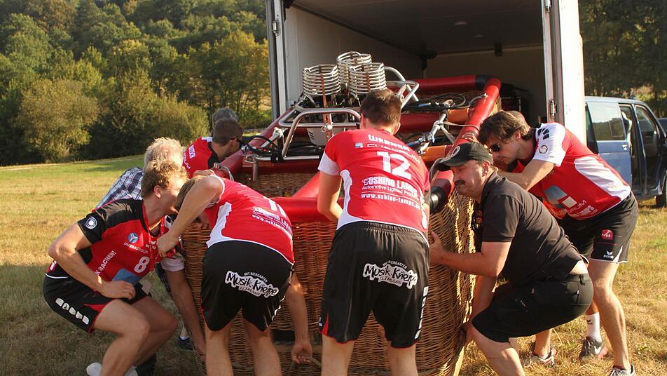 Bei ihrer offiziellen Mannschaftsvorstellung präsentierten die Oshino Volleys des VC Eltmann eine Fahrt mit dem Heißluftballon.