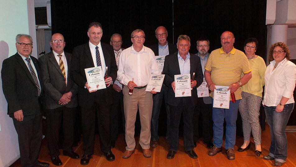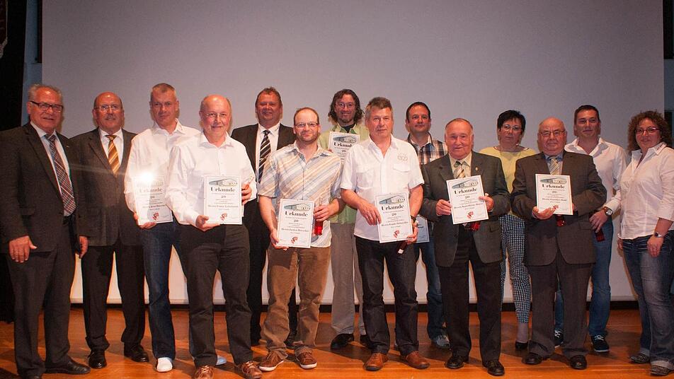 Die Geehrten sind, für 20 Jahre Zugehörigkeit: Jens Ritschel, Jochen Drescher, Peter Glückert, Franz Lehnhardt, Johannes Lehnhardt, Karl-Heinz-Bayer, Thomas Frantzen, Günther Bald, Jürgen Krapf, Guido Schneider, Heiko Schneider, Uwe Wagenhäuser.