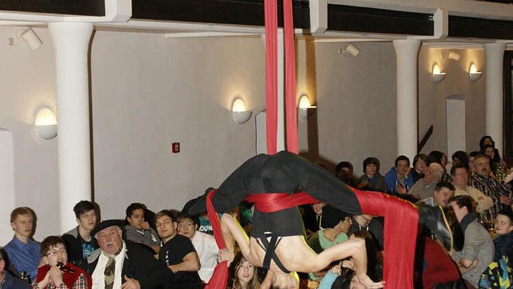 Artistische Glanzpunkte setzte in der Sportlerehrung das Duo "Firlefanz", und vor allem die Bänderakrobatik von Silke Ebert ließ alle in der Halle den Atem anhalten.