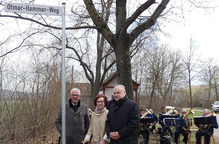 Offiziell eingeweiht wurde der Otmar-Hammer-Weg in Augsfeld. Die Verbindungsstraße zwischen Lindenhain und der hinteren Zufahrt zur Werkstätte der Lebenshilfe wurde nach dessen ehemaligen und schon verstorbenen Leiter benannt. Die Blaskapelle der Lebenshilfe umrahmte die Feier mit passender Musik zu Ehren des geschätzten und beliebten Otmar Hammer.