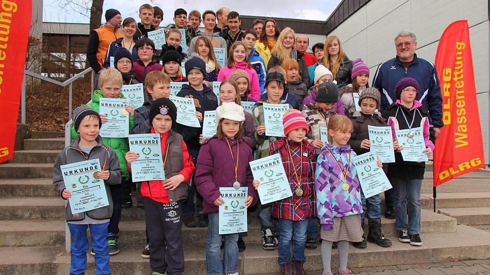 Nach dem rund dreistündigen Wettkampf konnte jeder Teilnehmer bei der Siegerehrung eine Urkunde entgegennehmen und alle Sonderlaufabsolventen erhielten eine Medaille. Die drei Erstplatzierten in den jeweiligen Altersklasse und in den Sonderläufen haben sich gleichzeitig für die DLRG-Bezirksmeisterschaften 11. Mai in Gerbrunn bei Würzburg qualifiziert. Die Siegerehrung führten Andy Mölter und Rudi Rath durch.