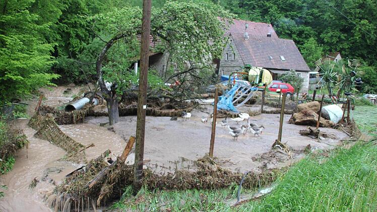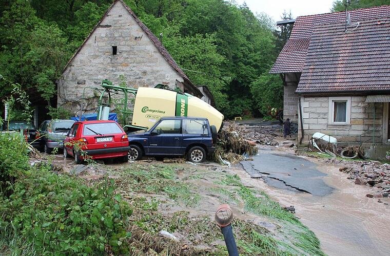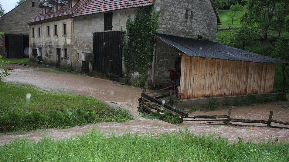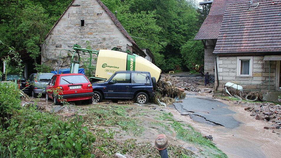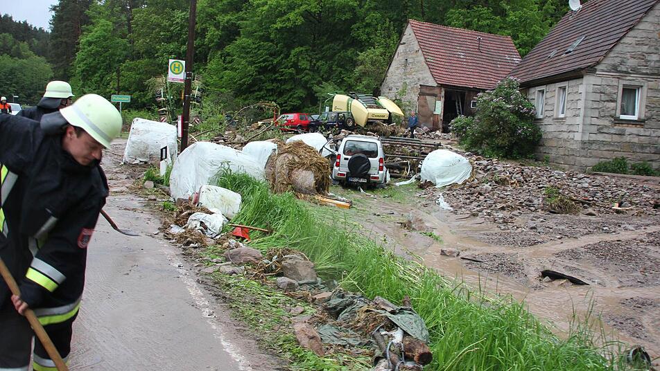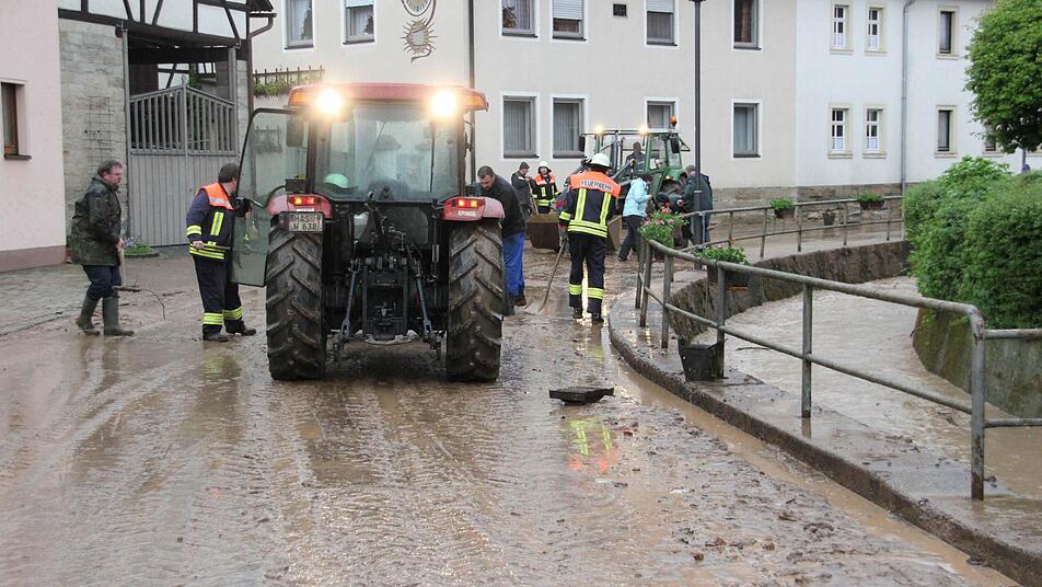 Besonders heftig wütete das Unwetter auch in Altershausen (Stadt Königsberg). Schlamm ergoss sich in einer Höhe von fünf bis zehn Zentimetern nahezu flächendeckend auf die Durchfahrtsstraße. Die Feuerwehr und die Anwohner rückten mit schwerem Gerät (Traktoren mit Frontladern) sowie Besen, Schaufeln und Wasserschläuchen an, um den Boden, der von den Äckern auf die Straße geschwemmt worden war, zu beseitigen. Aus allen Häusern seien die Helfer gekommen, freute sich ein Altershäuser über die Solidarität. "Das ist klasse."