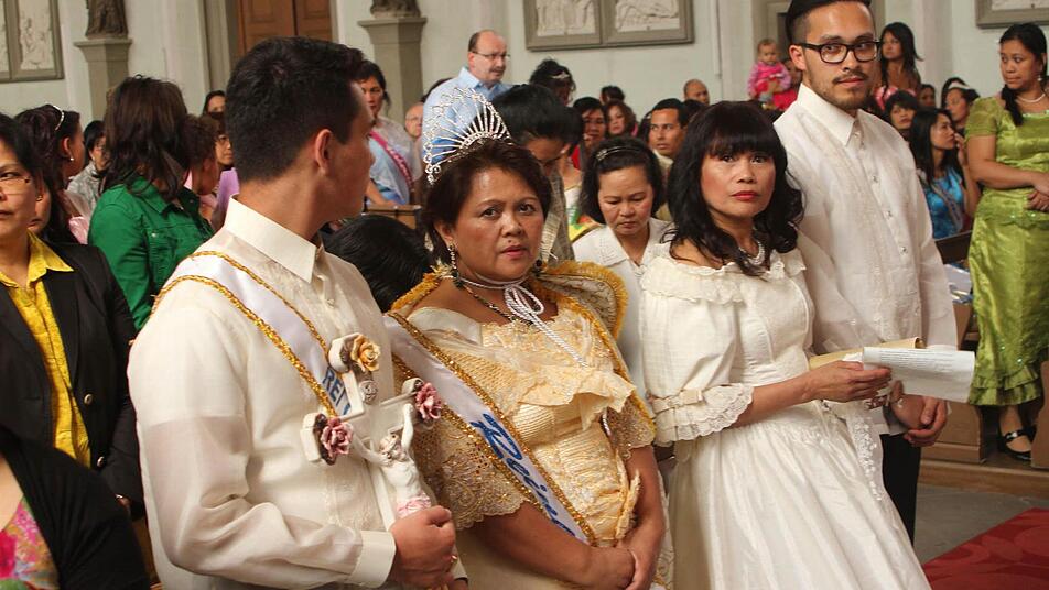 Beim Santacruzan-Fest der philippinischen Gemeinde in Eltmann war die Stimmung hervorragend. In der Stadtpfarrkirche fand neben dem Gottesdienst auch die Prozession statt, da das Wetter nicht mitspielte. Das tat der Sache aber keinen Abbruch.