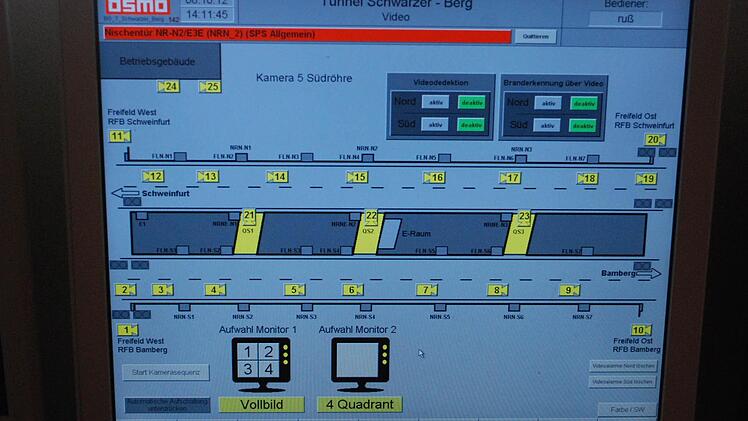 "Falschfahrer!" Die Alarmbotschaft auf dem Bildschirm der Verkehrszentrale in Fischbach bei Nürnberg springt alle paar Sekunden ins Blickfeld, in Sekundenbruchteilen übermittelt auf der 110 Kilometer langen Datenautobahn, die im Tunnel "Schwarzer Berg" bei Eltmann beginnt.