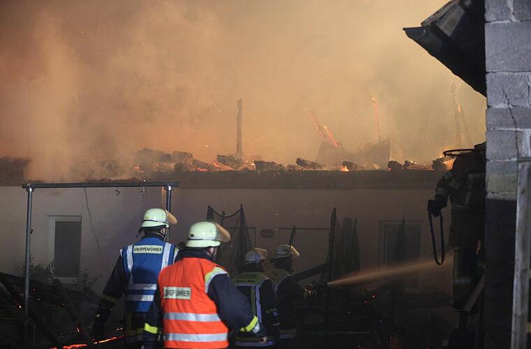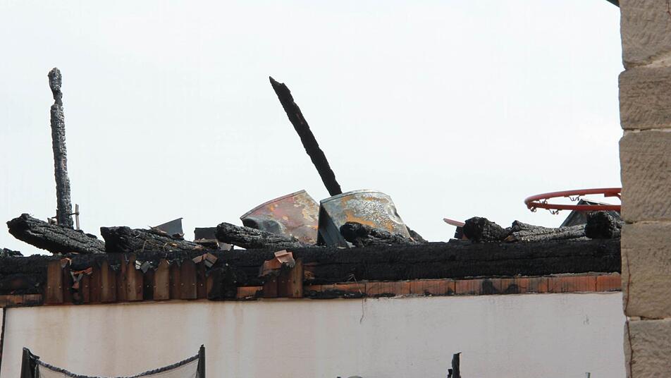 "Der Funkenflug war enorm", berichtet sie und zeigt auf ihren Hof, wo überall Aschereste liegen und Ruß den Boden schwärzt. Die Feuerwehr hat deswegen vorsorglich die Nachbarhäuser mit Wasser besprüht, um weitere mögliche Brandherde einzudämmen.