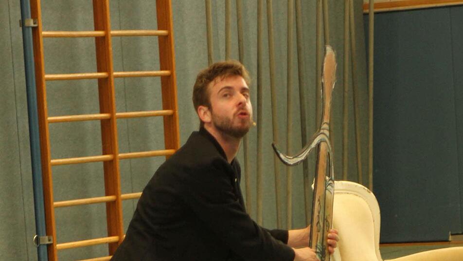 In einem Ein-Mann-Stück brachte Michael Guggenberger den Schülern aus Eltmann Beethovens "Neunte" und die Instrumente eines Orchesters näher. Der musikalische Mime schlupfte dafür in die Rollen von zwölf Tieren und eines Dirigenten.