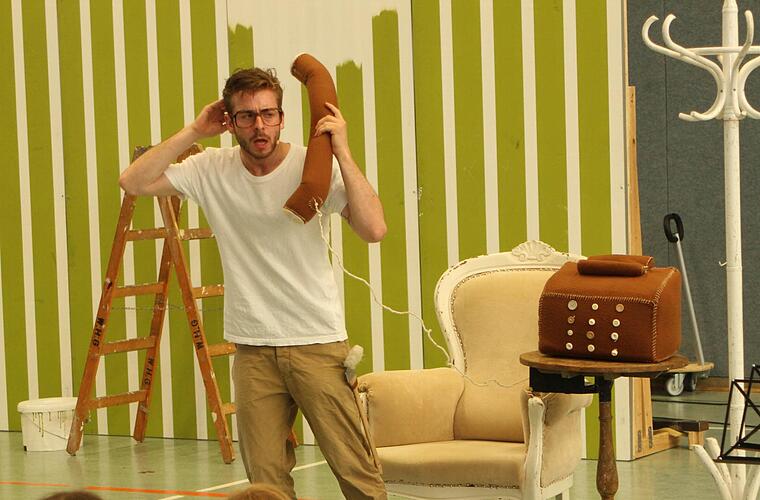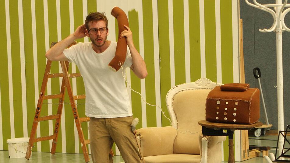 Ohne Kostüm und Masken schlüpfte der Protagonist des Ein-Mann-Stückes in rasantem Wechsel in die Rolle von zwölf Tieren und dazu auch noch in die Rolle des jungen Dirigenten Herbert Karavan.
