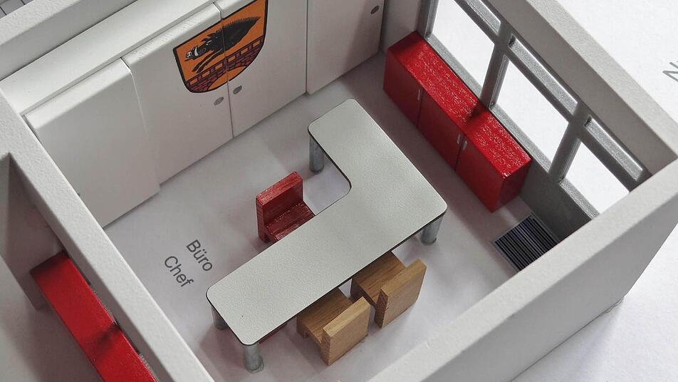Das Eberner Stadtwappen irgendwo zu haben, war der persönliche Wunsch des Bauhofleiters Christian Raehse. Überdimensional könnte er es auf seinem in roter Farbe glänzendem Schiebetürenschrank im Büro haben, oder an der Wand im Aufenthaltsraum."Wir werden jetzt erst einmal sparen, um das Budget zu erhöhen", so der Bürgermeister, der ganz entzückt ist von den vielen Ideen, die die Anforderungen weit übertreffen.