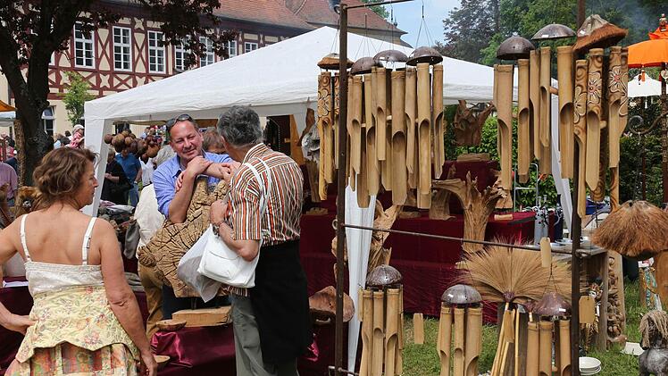 Wieder einmal erweist sich das Gartenfest des Baron von Rotenhan als absoluter Renner an den Pfingsttagen mit einem Einzugsbereich, der weit über Nordbayern und Südthüringen hinausreicht. Die Mischung aus exotischen Pflanzen, Kunsthandwerk für den Garten sowie Klunkerchen und Hüten, wie man sie nicht an jeder Stange findet, übt einen besonderen Reiz aus -und mancher versetzt sich träumerisch in die Welt der Schönen und Reichen.