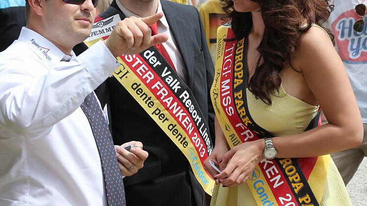 Als Publikumsmagnet erwies sich auch die zehnte Auflage des Gartenfestes in Schloss Eyrichshof. Vor der traumhaften Südfassade des Schlosses stand Starmodel Sarah-Anessa Hitzschke in einem Interview Rede und Antwort und für eine Autogrammstunde bereit. Flankiert vom Manager sowie Bodyguards war die Heidi-Klum-Entdeckung im roten, schulterfreien Kleid und in hochhackigen Schuhen übers Pflaster des Schlosshofes einmarschiert und hatte schon dabei jede Menge Blicke auf sich gezogen. Das nennt man attraktiv. Im Troß: Ein Kameramann und Mrs. und Mr. Franken als Geleitschutz.