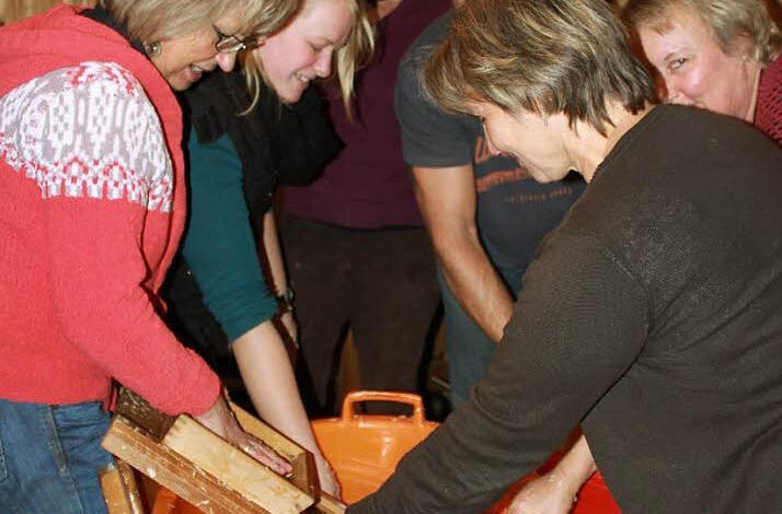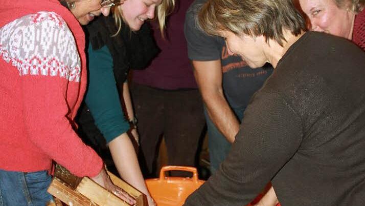 "Viele Junge wissen ja gar nicht mehr wie das geht", stellte die Veranstalterin, Klara Schramm, fest. Also hatte sie über den Obst- und Gartenbauverein eingeladen und Irmgard Hau, Ulrike Schmidt, Julia Welsch, Gisela Güthlein und Christian Voigt waren gekommen, um sich dieses Ereignis nicht entgehen zu lassen. Doch was war zu