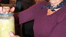 Heute nimmt Klara Schramm einen Gefrierbeutel, den sie so mit Wasser füllt, dass "er das Glas bis oben an den Rand voll macht, er darf auch gern etwas drüber gehen, damit das Kraut auch wirklich zusammen gedrückt wird", wenn der Deckel drauf kommt. Und damit ist die Hauptarbeit des Krauteinmachens eigentlich schon getan. Richtig schnell waren die Damen und der Herr damit fertig, nach nur eineinhalb Stunden war der Kellerraum von Familie Schramm schon fast wieder blitzblank sauber.