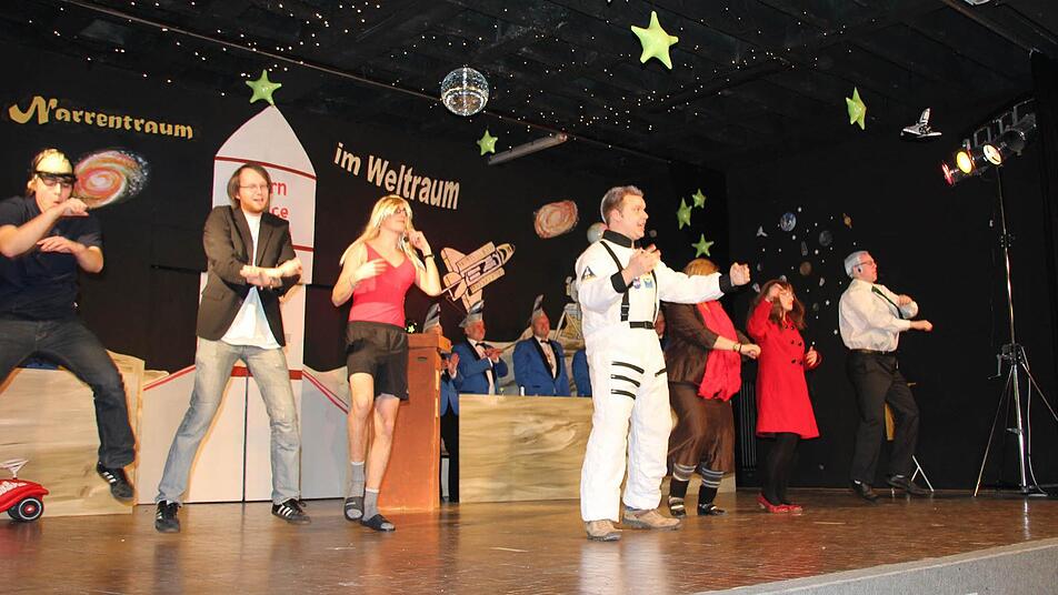 Unendliche Welten erschloss das Raumschiff "Ebi-Prise" bei den bunten Abenden des Eberner Kulturringes am Wochenende. Beim "Narrentraum im Weltraum" wurde der Bürgermeister von der Umlauf- in die Auslaufbahn geschossen, und auch Spitzen auf Nachbarn abgefeuert: "Wir sind nicht hinterm Mond, weil nicht in Rentweinsdorf."
