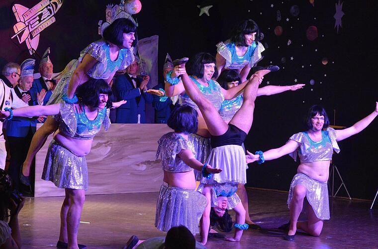 Zwei Büttenreden, viele Tänze und pointierte Sketche sorgten für ein unterhaltsames, vierstündiges Programm, das sich weniger im Weltall abspielte, sondern bodenständig blieb und viel Lokalkolorit liefert. Neben einheimischen Originalen kam dabei auch Eberns neue (und erste) Polizistin "zu Ehren", die innerhalb einer Viertel Stinde zehn Anzeigen wegen Falschparkens ausstellte. "Ein Rekord", fanden die "Altenberger"- "a ganz aa Scharfa".