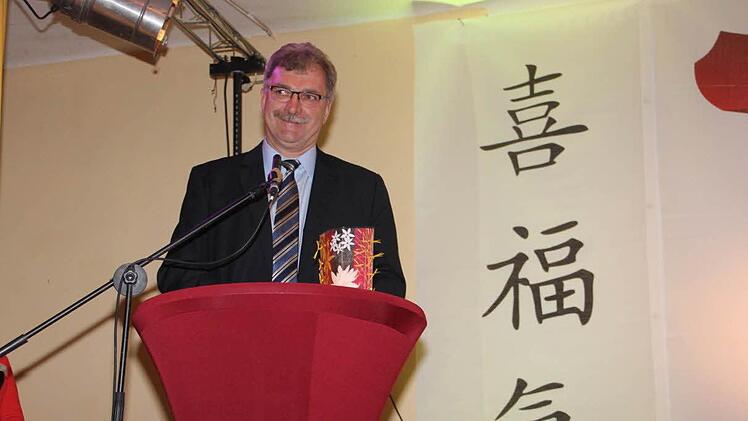 Lebendig und dynamisch zeigte sich Großmeister Horst Zettner auf der Bühne, als er seine Jahre, die er als Förderer von Dietmar Renner und des Karateverein Untermerzbach in der Itzgrundgemeinde zubrachte, Revue passieren ließ. Immer wieder hob er den unbändigen Ehrgeiz Dietmar Renners (heute Ehrenvorsitzender) hervor, der im Training "fast nicht kleinzukriegen" war.