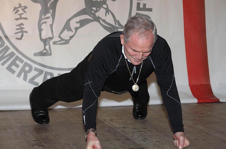 Dass Karatesport fit hält, zeigte der 73-jährige Großmeister indem er unter tosendem Beifall auf der Bühne Liegestützen machte, wobei sein gestählter Köper eine kerzengerade Linie bot. Wer sich über den Verein informieren möchte, kann dies im Internet unter