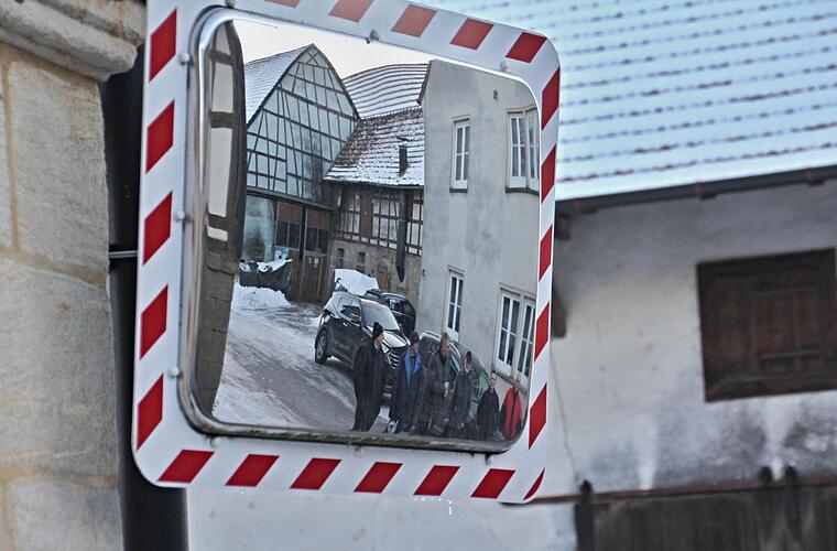In der Ortsmitte von Recheldorf ging es um die Anbringung eines Verkehrsspiegels, den der örtliche Gemeinderat Gerhard Roth (Bürgerblock/FW) beantragt hatte, wie Bürgermeister Helmut Dietz (SPD) vor Ort erläuterte. Um die Wirksamkeit und Sinnhaftigkeit eines Verkehrsspiegels zu testen, ist seit einiger Zeit ein Spiegel "probehalber" angebracht, wie das Gemeindeoberhaupt sagte. Das Gremium konnte sich davon überzeugen, dass ein Spiegel an dieser Stelle Sinn macht. Deshalb wurde beschlossen einen solchen anzuschaffen. "900 Euro kostet dieser, dazu die Installation", sagte Helmut Dietz.