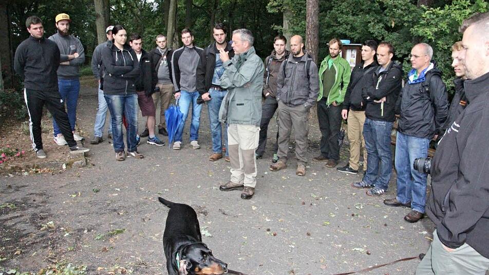 Weiter ging es dann durch naturnahen Wald zu verschiedenen Stationen. Dort ließ Forstamtsrat Wolfgang Gnannt, beschäftigt beim Amt für Ernährung, Landwirtschaft und Forsten in Schweinfurt, den angehenden wissbegierigen Führungskräften des Schreinerhandwerks fachlich fundierte Informationen zukommen.