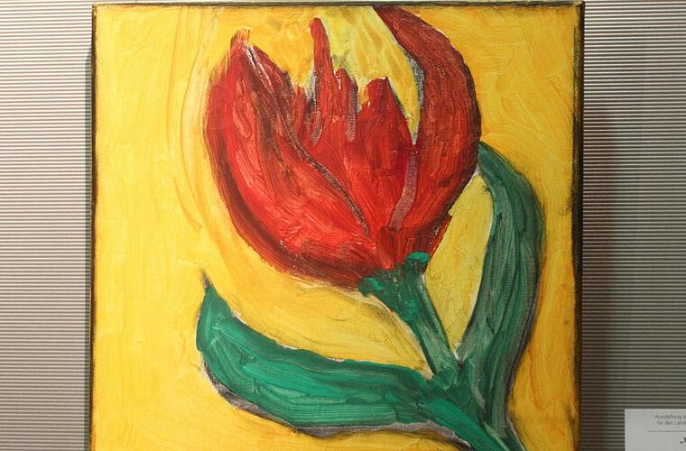 Sozialarbeiterin Christin-Elisabeth Engelke stellte zu der Ausstellung auch die Arbeiten der Gruppe "Therapeutisches Ausdrucksmalen" vor. In dieser Gruppe sind 15 Bewohner tätig mit einem Durchschnittsalter von 84 Jahren. Die älteste Malerin sei 98 Jahre und die jüngste 76 Jahre.