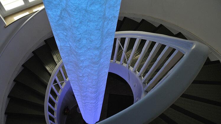 Licht als Kunstwerk Herrliche Akzente setzte am Eröffnungstag gestern noch der Eberner Lichtgestalter Norbert Wirner, indem er den Finanzamtshof illuminierte.