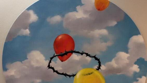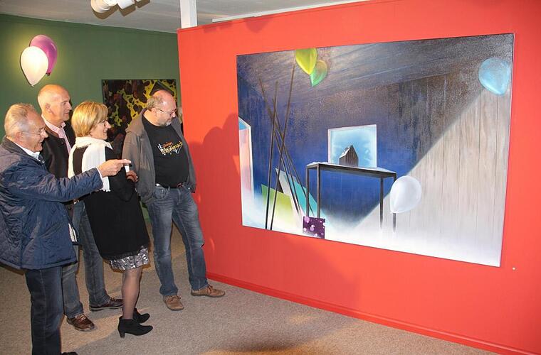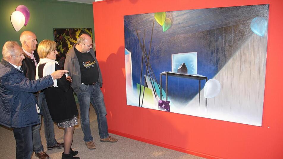 Pfarrer Bernd Grosser sagte in seinem Grußwort: "Gerhard Rießbeck kann mehr als nur Luftballons malen, das haben wir schnell gemerkt." Er schaffe es, mit seinen Werken Stimmungen und Gefühle zu wecken, aber auch zu provozieren. Damit spielte der Geistliche auf das Kunstwerk an, welches demnächst in der Christuskirche in Ebern zu sehen sein wird.