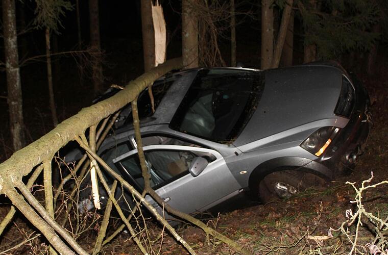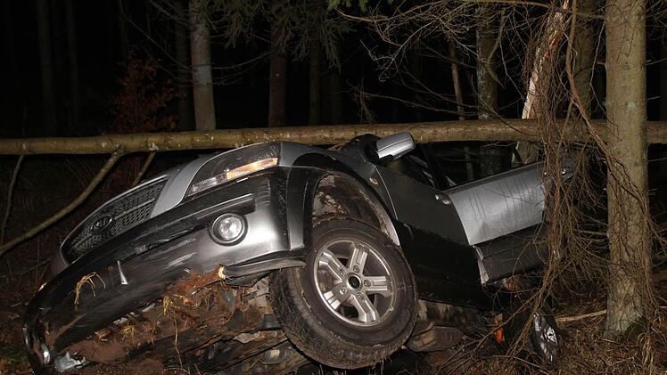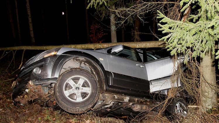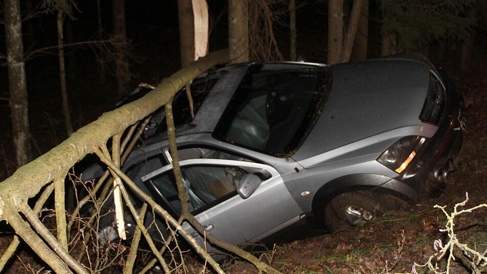 Sie trugen zum Glück nur leichte Verletzungen davon. Immerhin musste die Feuerwehr einen Baum und Äste entfernen, damit der Wagen geborgen werden konnte: