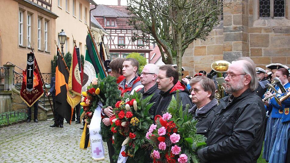 "Die Erinnerung darf nicht vergehen." Dies war die zentrale Botschaft des Volkstrauertages in Ebern. Sowohl Bürgermeister Jürgen Hennemann (SPD) als auch die beiden Geistlichen, Pfarrer Bernd Grosser und Pater Rudolf Theiler, mahnten dies in ihren Ansprachen und dem Gebet an. "Kriege haben noch nie tatsächliche oder vermeintliche Probleme gelöst", stellte Pater Theiler fest und sprach gleichzeitig den Männern und Frauen in der Bundeswehr Dank aus für ihren Einsatz, den Frieden zu sichern aus. Denn "aus dem Gedenken an die Toten ist die Pflicht zur Verantwortung für den Erhalt des Friedens anzunehmen".