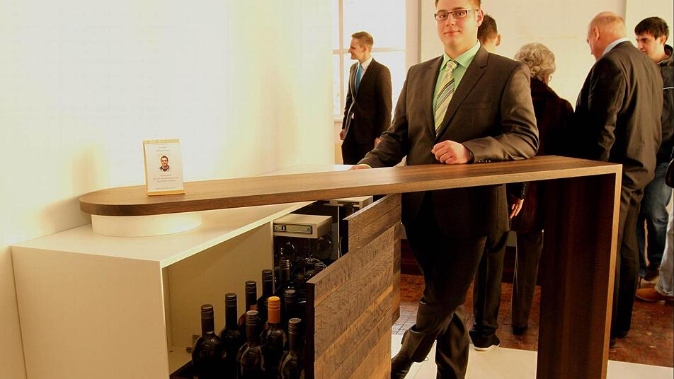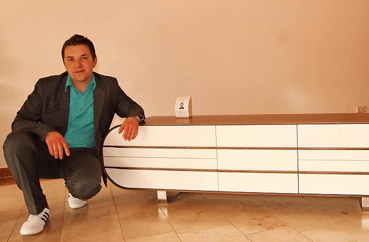 Der 27-jährige Andy Schnapp hatte als Meisterstück ein TV-Board aus amerikanischen Nussbaum gefertigt mit lackierten Fronten und der Oberfläche mit Hartwachsöl bearbeitet. Er hatte seine Lehre in der Schreinerei Kann in Zeil absolviert und arbeitete nun sieben Jahre als Geselle bei der Schreinerei Rottmann in Oberschleichach.