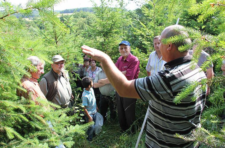 Ein wirtschaftlicher Aspekt, den Bürgermeister Robert Herrmann als Vorsitzender nicht aus dem Auge ließ, auch wenn man in der Douglasien-Schonung vor lauter Bäumen den Wald kaum mehr sah: "Die Douglasie eignet sich nicht als Christbaum, aber als gutes Bauholz, ähnlich der Lärche, ist aber am Markt noch nicht so gefragt, das kommt aber noch, weil sie den Klimawandel offensichtlich besser verträgt. Unsere Nachkommen werden uns das danken."
